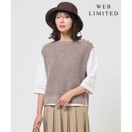 表情豊かな素材で魅せる、春夏のレイヤードスタイル!肩釦がアクセントのニットベスト