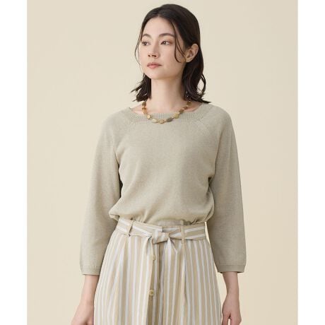 一枚でも、セットでもキレイに決まるスクエアネックニット■デザイントレンドシルエットであるスクエアネックを取り入れた、ベーシックで使いやすいニットプルオーバーです。シンプルながらも、着るだけでスタイリングに旬なムードを添えてくれます。同素材のカーディガン(KRW7LM0352)とのセット着用もバランスよく決まりおすすめです。■素材マニラ麻を主原料とした和紙を細く薄くカットし、細番手の綿糸を包むように撚り合わせた糸に、さらにポリエステルをタスキ状に撚糸した特殊な糸を使用しています。和紙ならではの清涼感と軽やかさがあり、快適な着心地が特徴の素材です。■同素材カーディガン(KRW7LM0352)ベスト(KRW7LM0353)