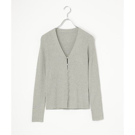 小さなくるみボタンをあしらい、ベーシックな中にやわらかな表情をプラスしたVネックカーディガン。