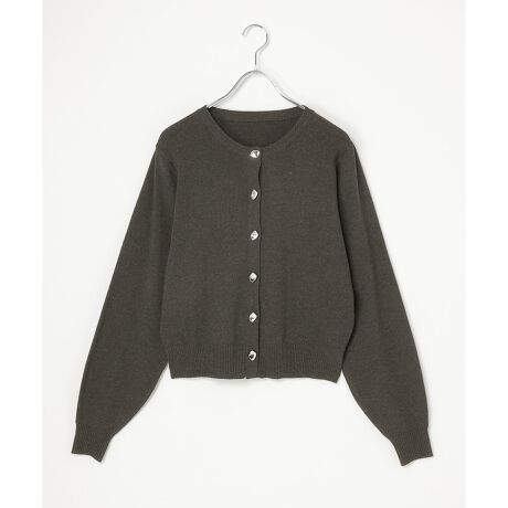 シンプルなカーディガンに、表情のあるメタルボタンを添えることで、さりげないアクセントを効かせた一着です。