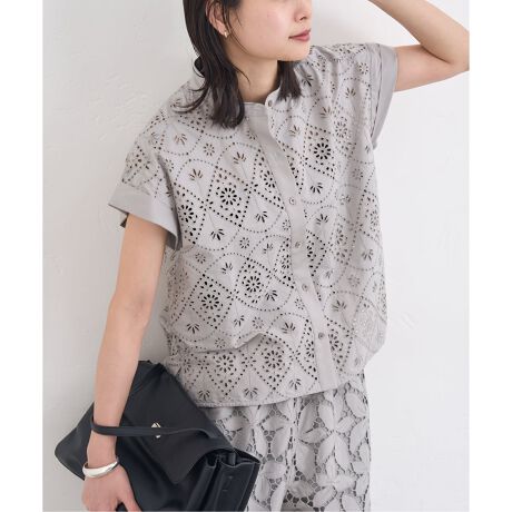 TICCAのオリジナルレースを贅沢に使ったデザインで、レースの甘さとすっきりとした衿元とのバランス感が良く、シャツの凛々しさとブラウスの愛らしさを合わせ持つ一枚。