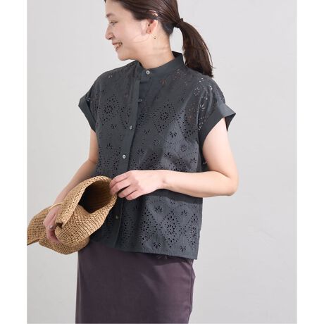 TICCAのオリジナルレースを贅沢に使ったデザインで、レースの甘さとすっきりとした衿元とのバランス感が良く、シャツの凛々しさとブラウスの愛らしさを合わせ持つ一枚。