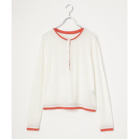 ヘンリーネックのほどよいラフさに、配色ディテールで今の気分を添えた一枚。