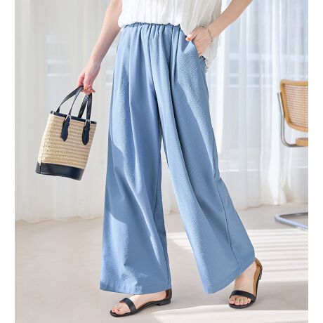 ウエスト総ゴムでも、きれいな落ち感で上品な印象をキープして、大人の女性にオススメです。