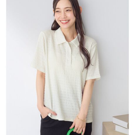 ・ポロデザインをジャカード素材で仕上げ、程よくきちんと感のある印象に!スポーティーになりすぎず旬な雰囲気
