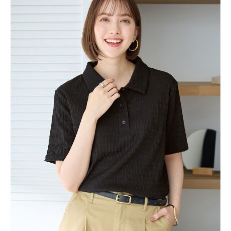 ・ポロデザインをジャカード素材で仕上げ、程よくきちんと感のある印象に!スポーティーになりすぎず旬な雰囲気