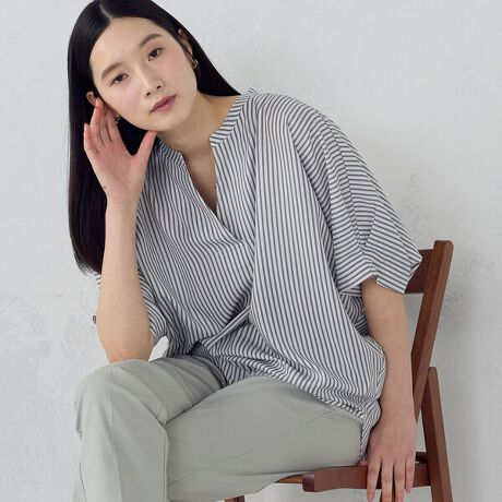 ナチュラルな素材の雰囲気を活かしたスキッパーブラウス。