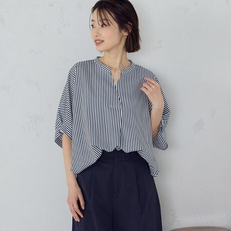 ナチュラルな素材の雰囲気を活かしたスキッパーブラウス。