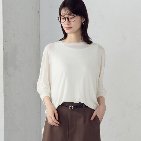 ふんわり柔らかな風合いと適度な透け感のあるシアーブラウスです。