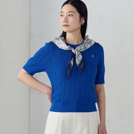 クラシカルなミニケーブルを使用した半袖ニットです。