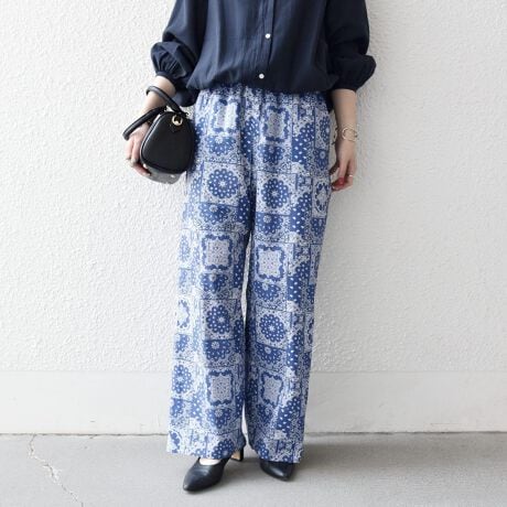 バンダナ柄が目を惹くイージーなワイドパンツ。