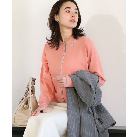 『顔まわり華やぐ配色ライン。羽織りでも使える万能2wayニット』