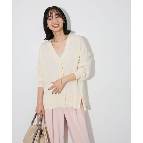 毎日に寄り添う、やさしい着心地のVネックほどよく開いたVネックが首元をすっきり見せ、自然な抜け感を演出します。ゆったりとしたシルエットで体のラインを拾いにくく、リラックスしながらきれい見えが叶います。サイドスリット入りで動きやすく、パンツにもスカートにもバランス良く合わせやすいのが魅力です。軽やかなニット素材は季節の変わり目にも活躍し、さっと羽織るだけで上品なカジュアルスタイルが完成します。お出かけからおうち時間まで幅広く使え、着回し力の高さもポイントです。シンプルながらも着心地にこだわった一枚で、毎日のコーディネートを快適に楽しめます。透け感[なし]