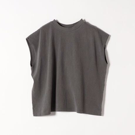 ヴィンテージライクな風合いのコットン素材を使用した、クルーネックノースリーブTシャツ。