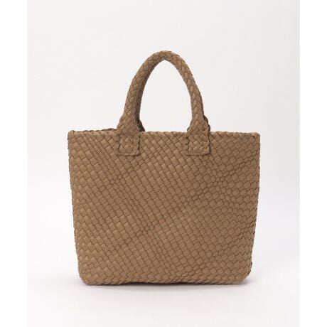 ネオプレーン素材を編み込んだ、表情のあるデザインが印象的なメッシュトートバッグ。