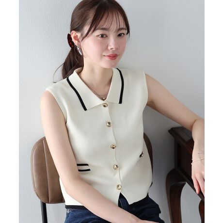 ゴールドボタンがきちんと見えするノースリーブポロニット
