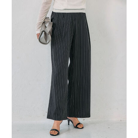 「ツータックストライプワイドパンツ」は、縦に伸びるストライプ柄が視覚的にすっきり感を生み出し、シルエット全体をきれいに見せてくれるパンツです。