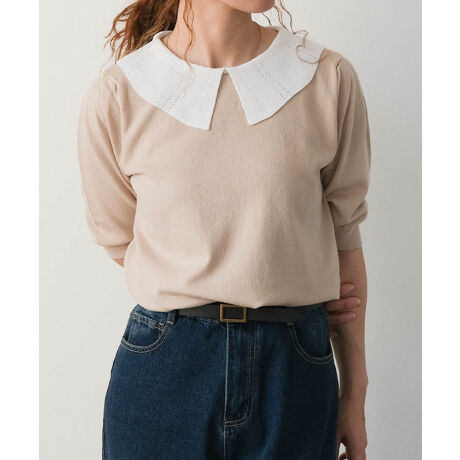 襟付きサマーニットトップスは、シンプルトップスだからこそボトムス選びが楽しくなる万能アイテム。