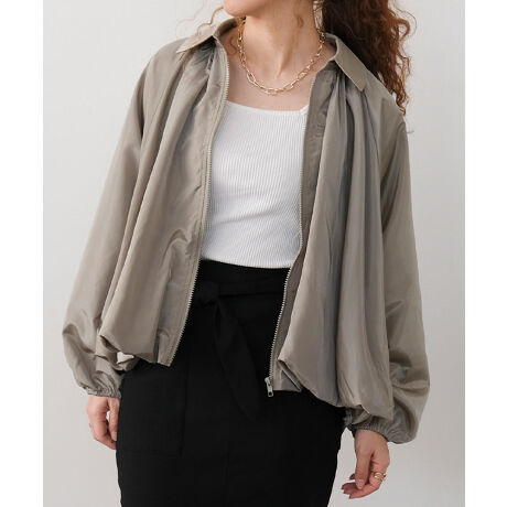 ほどよい光沢をまとったサテン素材が、大人の女性らしさを引き立ててくれるドルマンブルゾン。