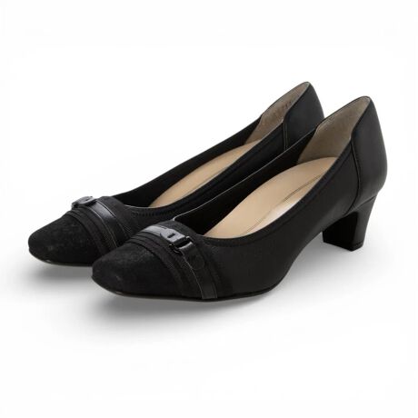 品の良いスクエアトゥのシルエットで、オンにもオフにも自然になじむキレイめパンプスです。