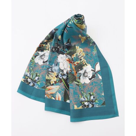 ■デザイン大胆なボタニカル柄が目を引くスカーフです。シルク100%のツイル素材に、オリジナルプリントを施しました。大判スクエアサイズでバッグに結ぶ、首元に巻く、ウエストやヘアアレンジに取り入れるなど、幅広いアレンジが楽しめます。スタイリングの幅を広げてくれる、万能なアイテムです。