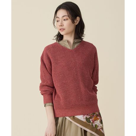 表情のある編み柄が映えるヘリンボーンニット■デザイン前身頃のヘリンボーン柄が印象的なプルオーバーニットです。繊細なメッシュ編みでほどよくトレンド感を取り入れつつ、身体のラインを拾いにくい、程よくゆとりのあるシルエットに仕上げています。さまざまな装いに馴染み、デイリーに取り入れやすいアイテムです。■素材原料にはフレンチリネンを使用しています。リネン特有の清涼感のある質感と、やさしい風合いが特徴です。表面の毛羽感をできるだけ抑え、すっきりと見えるよう工夫した紡績方法で仕上げています。■同素材メッシュニット(KRWMLM0356)