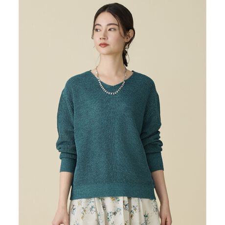 表情のある編み柄が映えるヘリンボーンニット■デザイン前身頃のヘリンボーン柄が印象的なプルオーバーニットです。繊細なメッシュ編みでほどよくトレンド感を取り入れつつ、身体のラインを拾いにくい、程よくゆとりのあるシルエットに仕上げています。さまざまな装いに馴染み、デイリーに取り入れやすいアイテムです。■素材原料にはフレンチリネンを使用しています。リネン特有の清涼感のある質感と、やさしい風合いが特徴です。表面の毛羽感をできるだけ抑え、すっきりと見えるよう工夫した紡績方法で仕上げています。■同素材メッシュニット(KRWMLM0356)