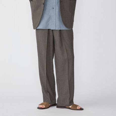 フロントにピンタックを入れることでラフになりがちなイージーパンツの印象をスタイリッシュに仕上げました。