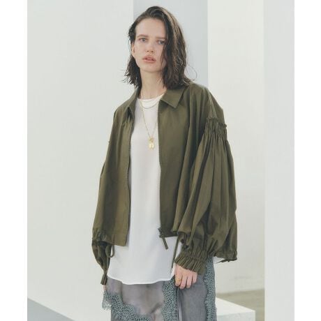 たっぷりのギャザーが入ったボリューミーな袖が目を惹くライトアウター。