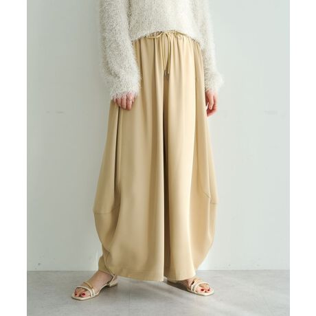 落ち感のある素材で仕立てたコクーンシルエットのワイドパンツ。
