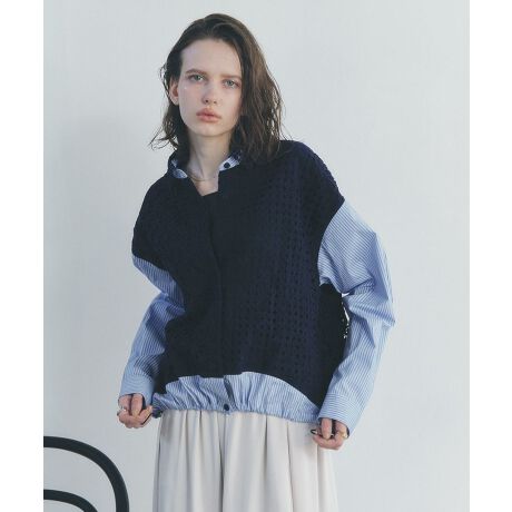 繊細な幾何柄や星柄のレースをシャツにドッキングさせたデザインシャツ。