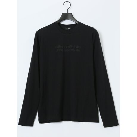 身生地と同色のプリントで大人っぽい雰囲気に仕上げた、クルーネックの長袖Tシャツです。同じ個所に何回も捺染することで立体的に仕上がる、厚盛のプリントがポイント。メッセージロゴは「今日という日は、残りの人生の1日目である」という意味です。綺麗目なインナーアイテムとしてジャケットインに最適な一枚です。プライベートからオフィスカジュアルまでオンオフ兼用で着回しが可能です。