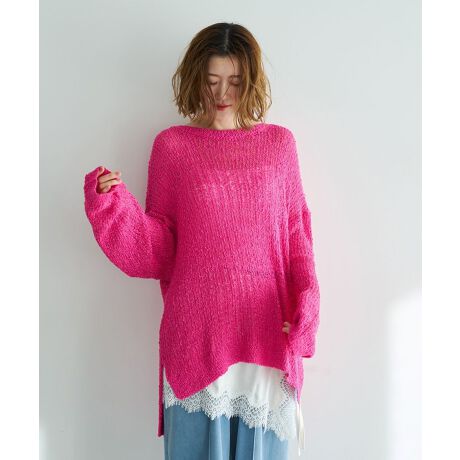 テープヤーンで編んだルーズなシルエットで、着ぶくれしにくい薄さも嬉しいポイントです。