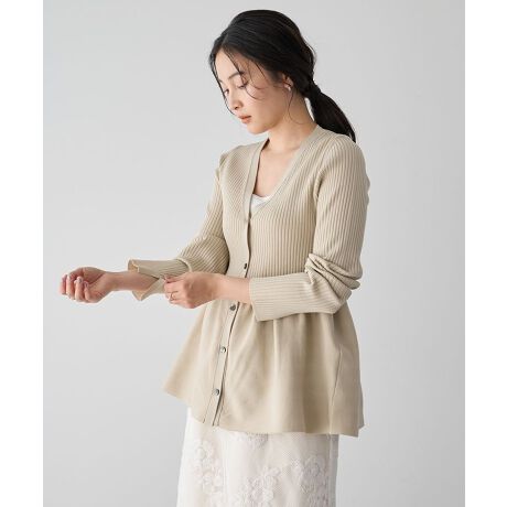 ウエストラインからふんわりと広がるペプラムシルエットがメリハリを生むカーディガン。