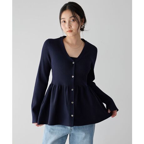 ウエストラインからふんわりと広がるペプラムシルエットがメリハリを生むカーディガン。