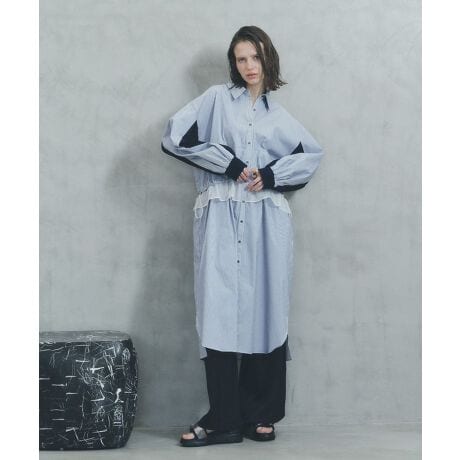 レイヤード感が映える異素材シャツワンピ