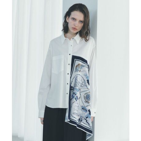 スカーフデザインを大胆にドッキングしたシャツ。