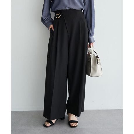 飾りベルトが洗練された雰囲気を纏うワイドパンツ。