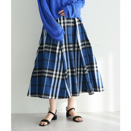 モードな雰囲気を引き出すチェック柄のフレアスカート。