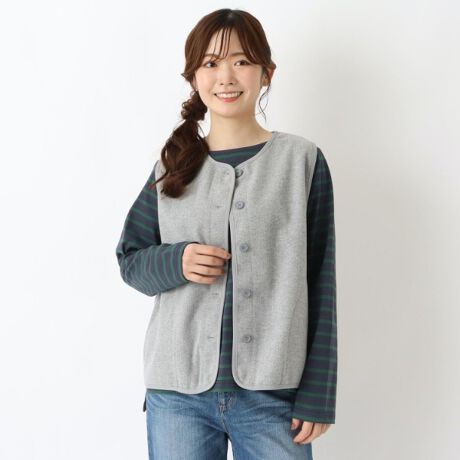 ウールライクな質感の微起毛生地を使用したパイピングベスト。