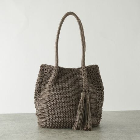 シンプルながら洗練されたデザインが魅力のコード編みタッセルトート。