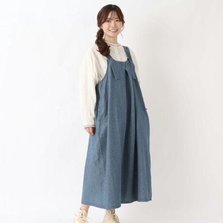 フロントの開きをタックにしたシンプルながらもデザイン性のあるジャンパースカートです。