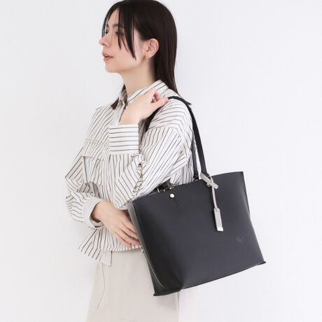 通勤通学のキレイめスタイリングに合わせやすいスッキリしたデザインのA4トートバッグ。