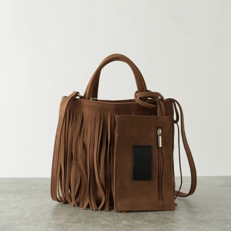 フリンジディテールが特徴的なスエードバッグは、個性的で遊び心のあるデザインがポイント。