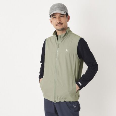 長袖や半袖のポロシャツとのレイヤードスタイルが楽しめるデザインは、ゴルフシーンでのコーディネートにも最適。