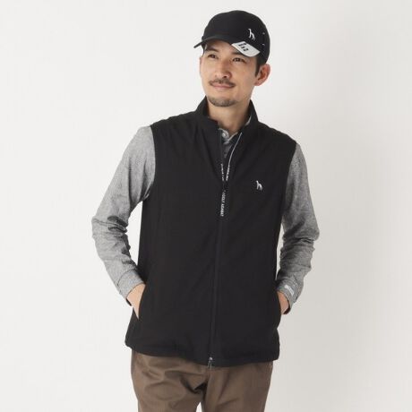 長袖や半袖のポロシャツとのレイヤードスタイルが楽しめるデザインは、ゴルフシーンでのコーディネートにも最適。