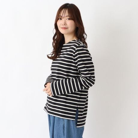 爽やかな配色ボーダー柄が着映えを叶えるボートネックプルオーバー。