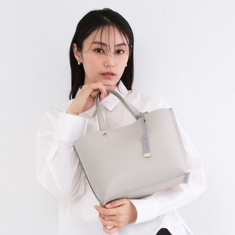 通勤通学のキレイめスタイリングに合わせやすいスッキリしたデザインのミドルサイズトートバッグ。