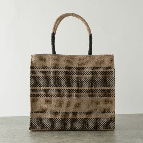ナチュラルな素材感とトレンドのストライプデザインが魅力的なバッグ。