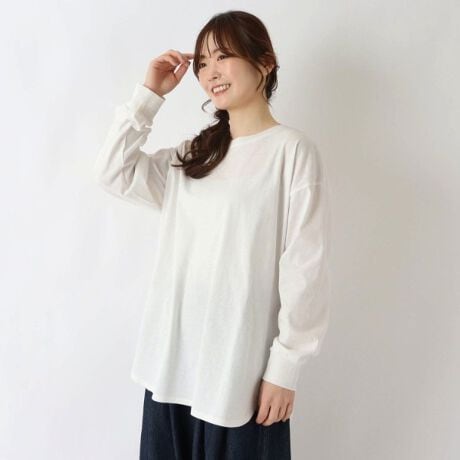 裾は前後差のあるラウンドへムで後ろはヒップが隠れるロング丈。